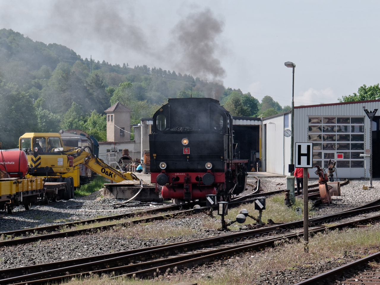 Die Donnerbüchsen werden von der V36 235 am Gleis 2 bereitgestellt,