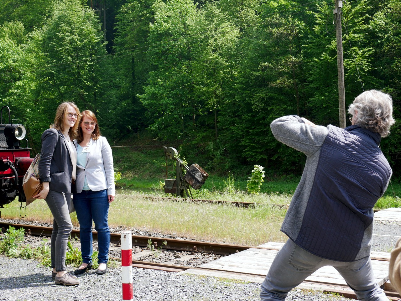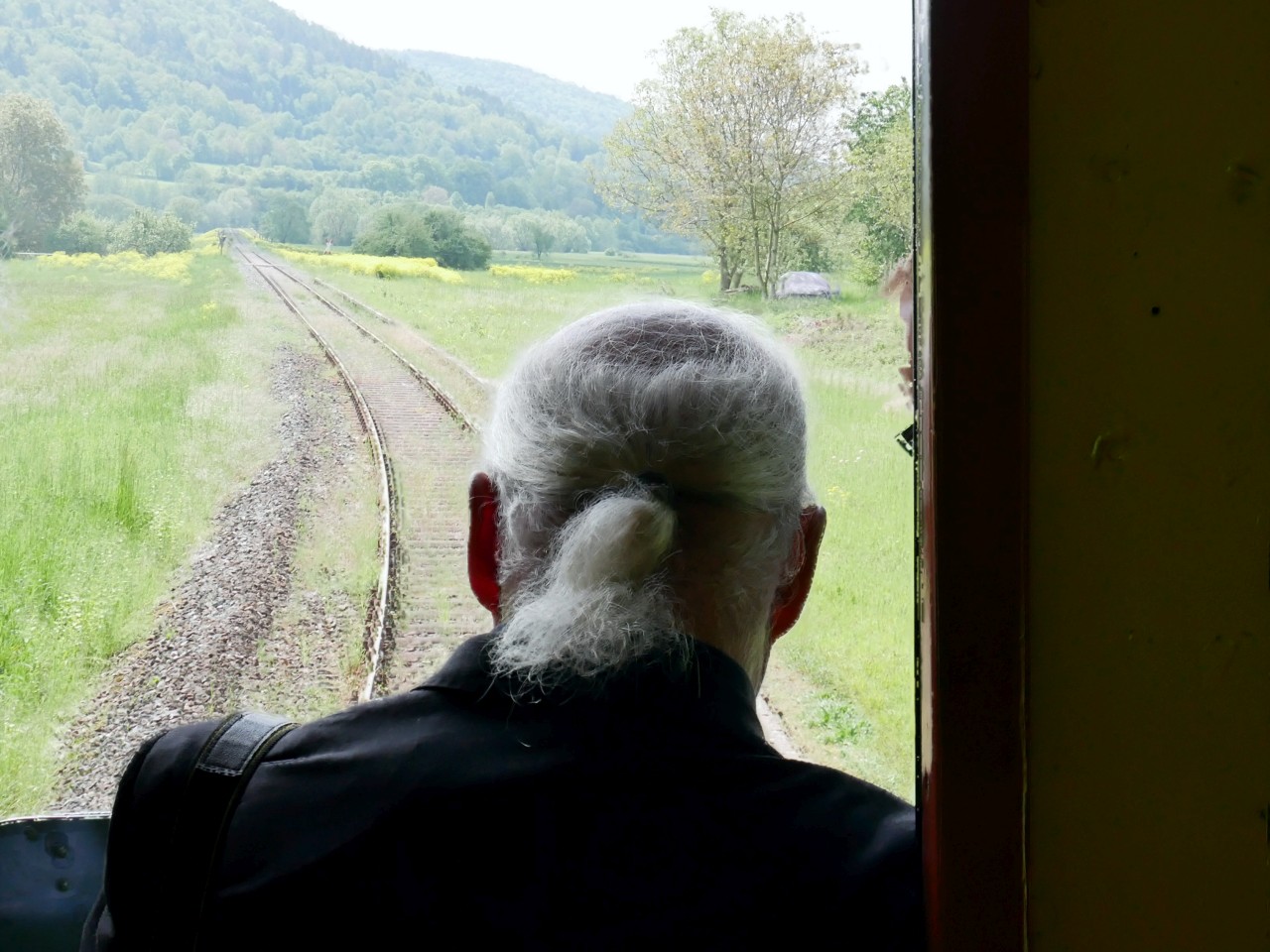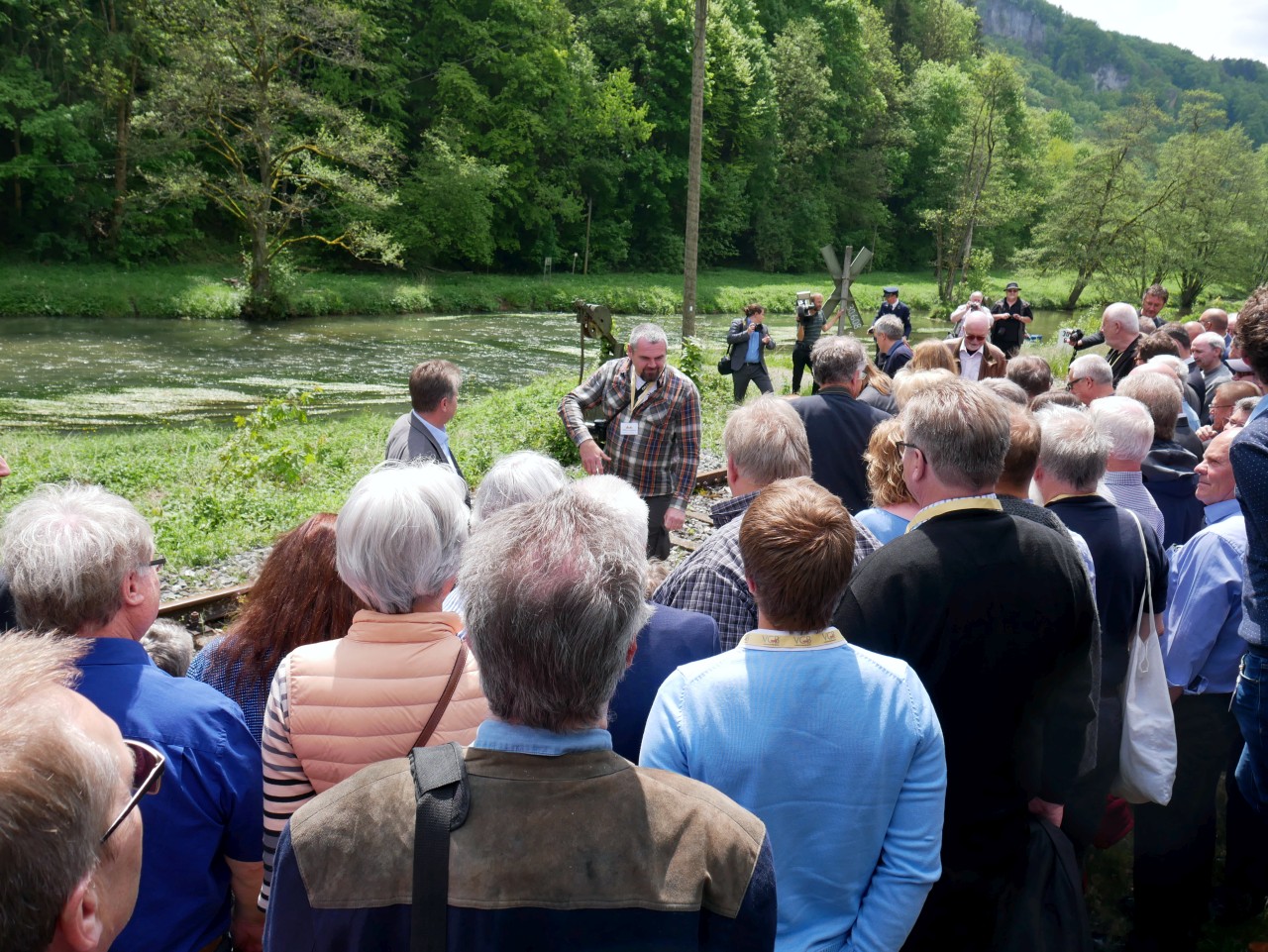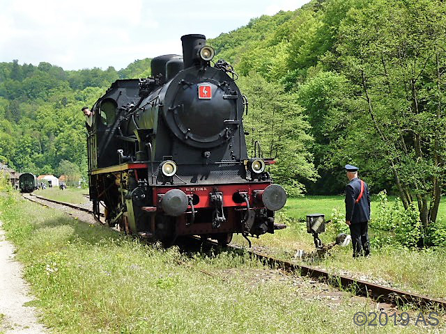 Nachdem alle Teilnehmer „gestärkt“ und die Fotos „im Kasten“ waren, ging es auf die Rückfahrt nach Ebermannstadt. Kurz vor Streitberg ein Halt auf freier Strecke mit anfolgender Scheinan- und -vorbeifahrt. Der Zug fuhr leer bis zum Bahnhof Streitberg und die Fahrtteilnehmer durften einen kleinen Fußmarsch absolvieren, bevor sie wieder einsteigen konnten.