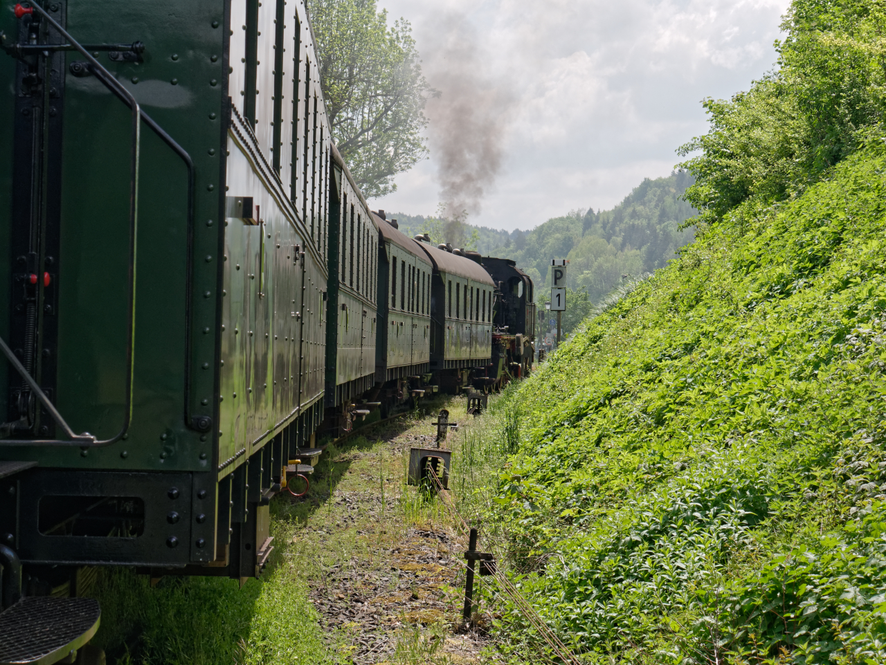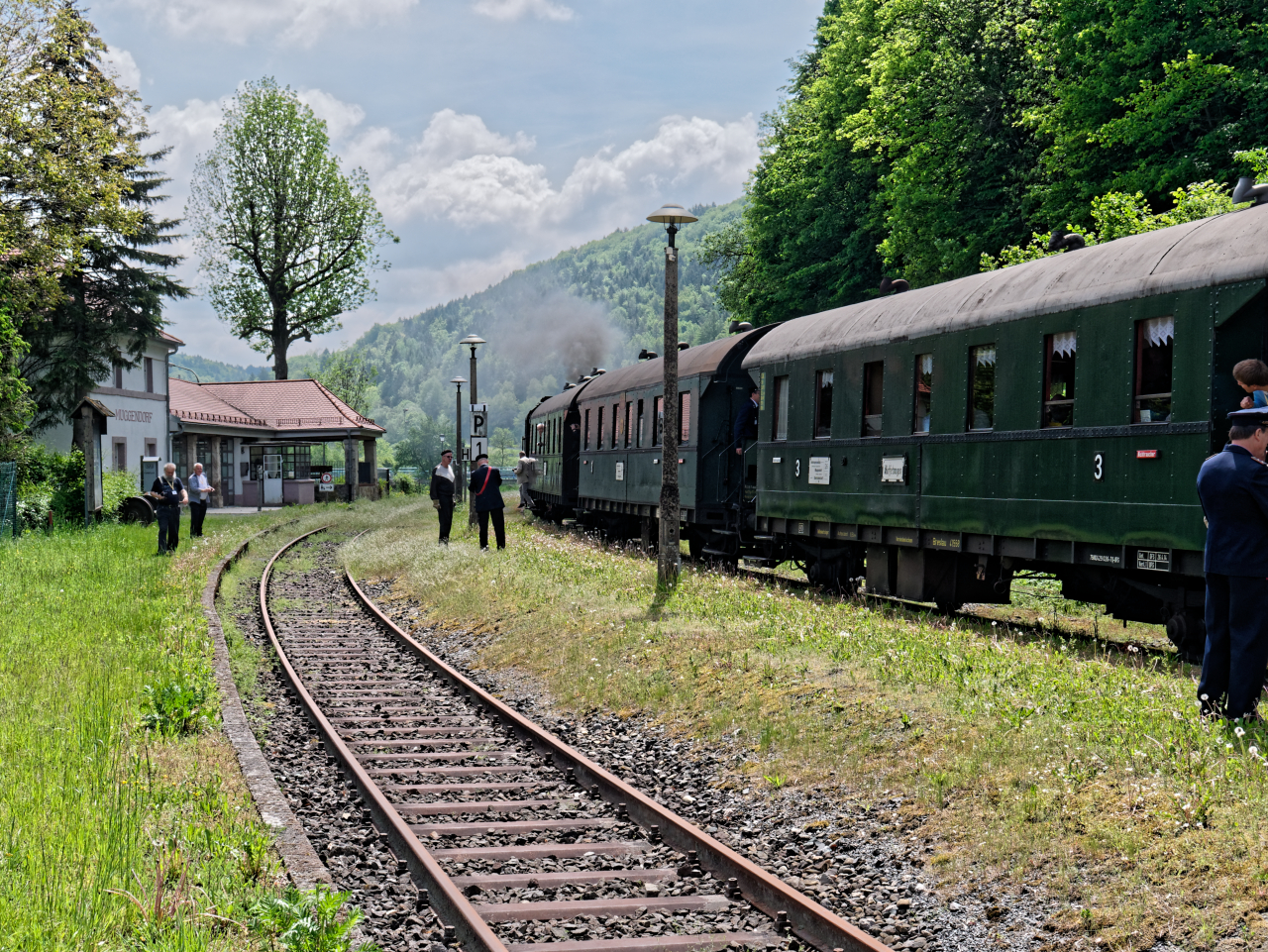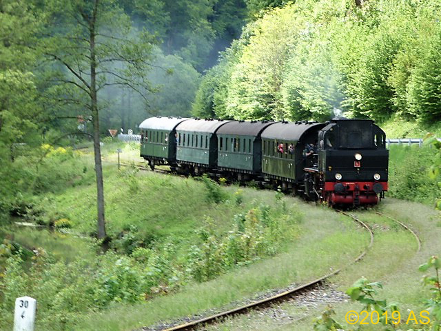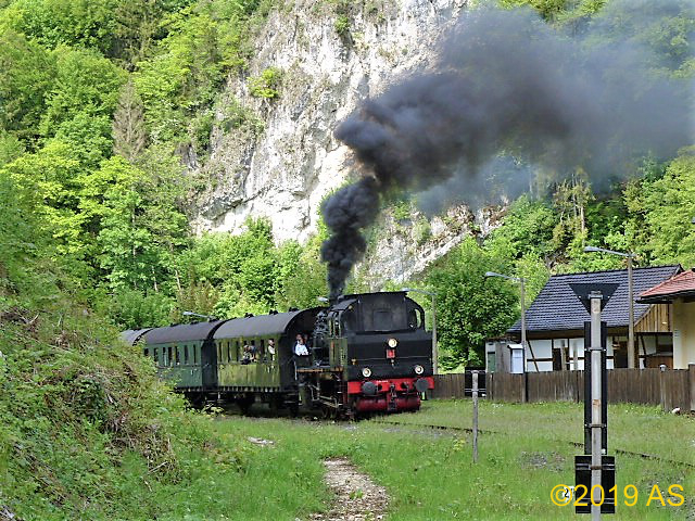 „Dampfkochen“ im Bahnhof Gößweinstein, die Hindenburgbrücke wird überquert, Vorbeifahrt an der Stempfermühle, wir nähern uns der Endstation Behringersmühle.