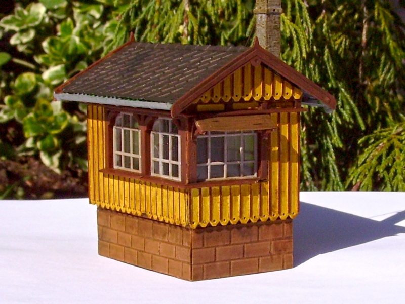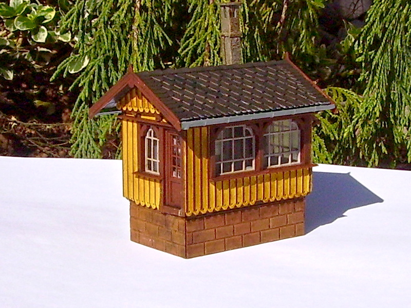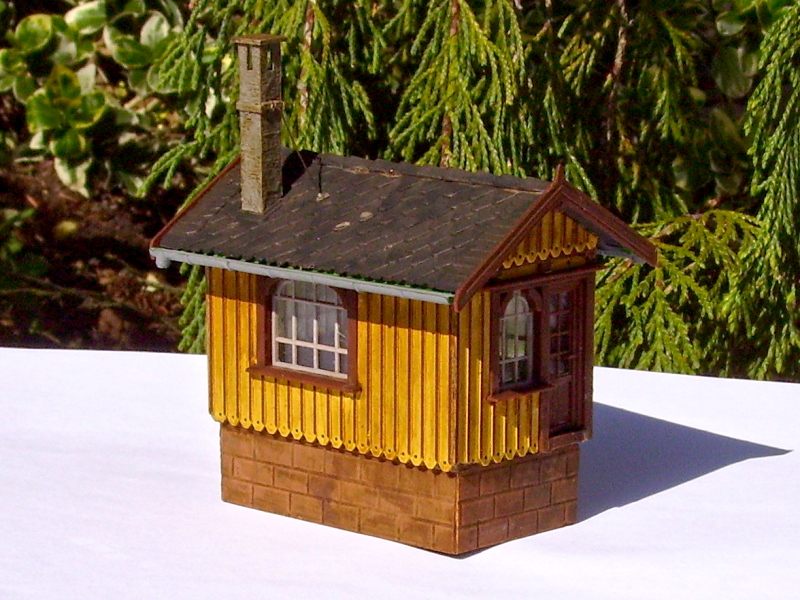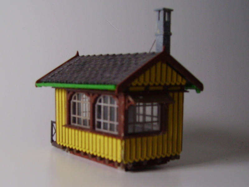 Das vorhandene Vollmer-Stellwerk war mir auch zu hoch. Ich beschloss, es zu „kürzen“. Mit Geduld, Skalpell und etwas Glück gelang es mir, das vor vielen Jahren aus einem Bausatz entstandene Modell in einige brauchbare Einzelteile zu zerlegen und als eingeschossiges Blockstellen-Gebäude mit Mauersockel wieder zusammenzubauen. Auch hier bekam ich wichtige Anregungen durch die Diskussion des Themas im Forum.
