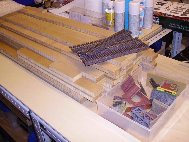 Materialien: Sind „im Haus“ (Holz, Gleise, Ausstattungsmaterial).