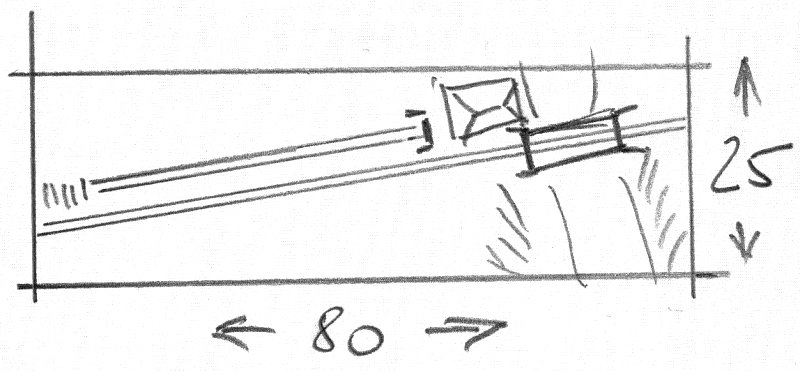 Eingleisiger Streckenabschnitt mit Blockstelle bzw. kleinem Stellwerk; teil-rückgebautes Abstellgleis bei dem, in Richtung einer virtuellen Weiche gedacht, die Schienenprofile teilweise entfernt wurden und nur noch Schwellen liegen, während vor dem Stellwerk noch ein alter Prellbock mit einigen „Metern“ Gleis liegen; eine kleine Brücke führt über eine Landstraße.