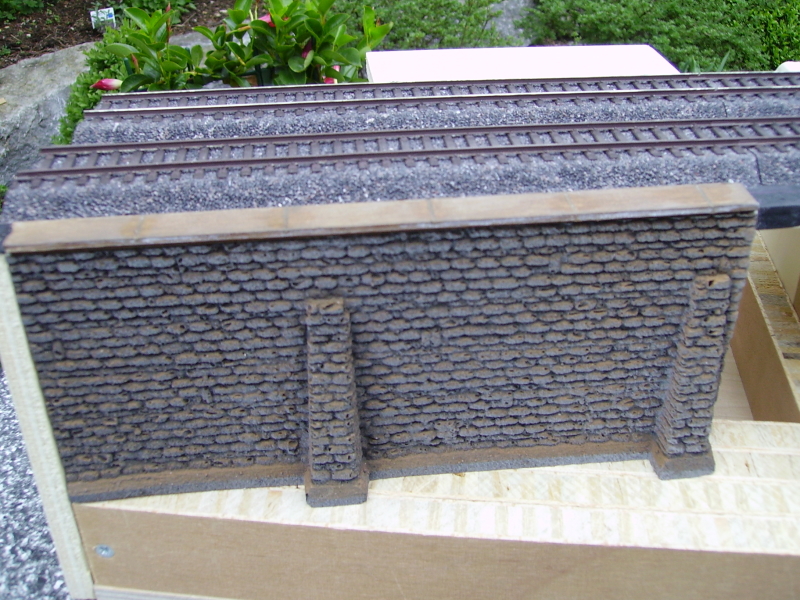 Ein Blick auf die Stützmauer (NOCH), deren obere Abdeckung aus Karton angefertigt wurde:
