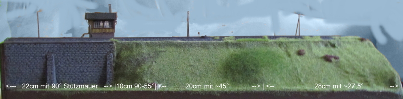 Das Modul ging zurück in meine Werkstatt und wird derzeit an der Steilhangstelle umgebaut, sodass ich eine Böschungsneigung von 45° erziele. Bilder vom und mit dem überarbeiteten Fotografier-Modul gibt es demnächst hier in der Fotogalerie zu sehen.