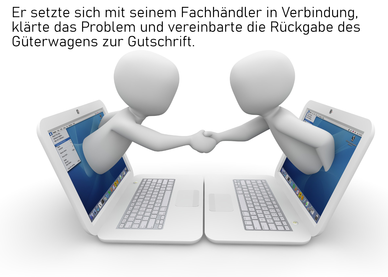 Diese ErzĂ€hlung beruht auf einer tatsĂ€chlichen Begebenheit in diesem Jahr. Die handelnden Personen und Firmen sind namentlich nicht genannt und bleiben anonym. Um RĂŒckschlĂŒsse auf beteiligte Dritte auszuschließen sind in Bild 6 die verbalen Entgleisungen des Herstellers unkenntlich gemacht.