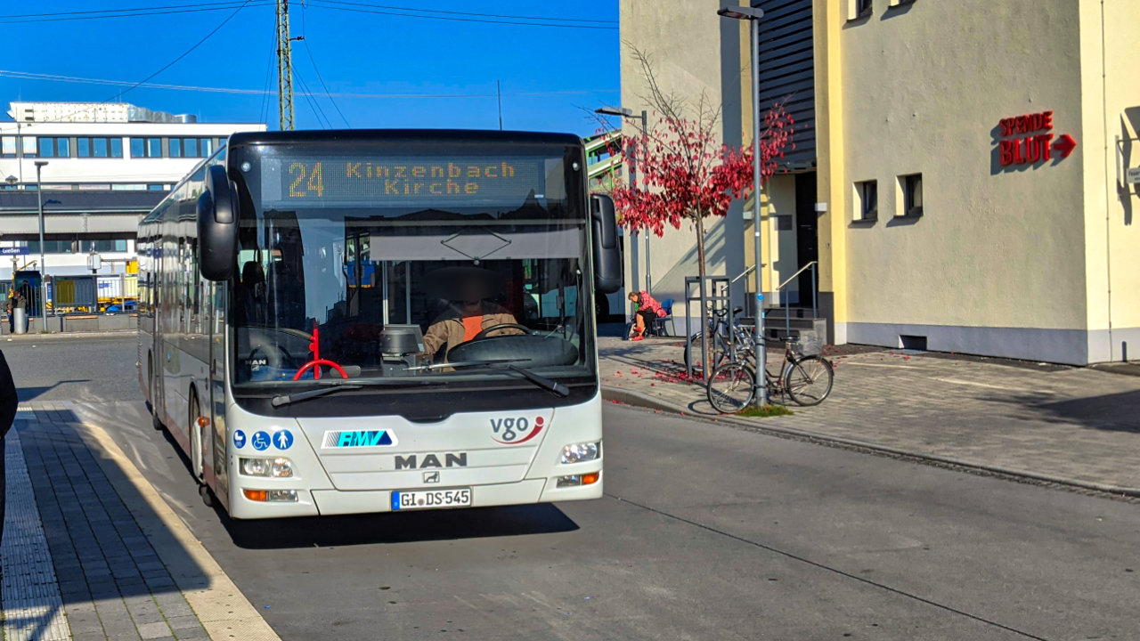 Mit dem Bus der Linie 24 fuhr ich vom Bahnhof bis zur Haltestelle SchĂŒtzenstraĂe und dann war es nur noch ein kurzer FuĂweg zur Messe in den Hessenhallen GieĂen.