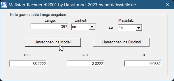 Das ProgrÀmmchen hat mir seither gute Dienste bei den verschiedensten Modellbahn- und Modellbau-Projekten geleistet.