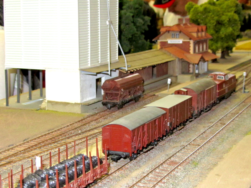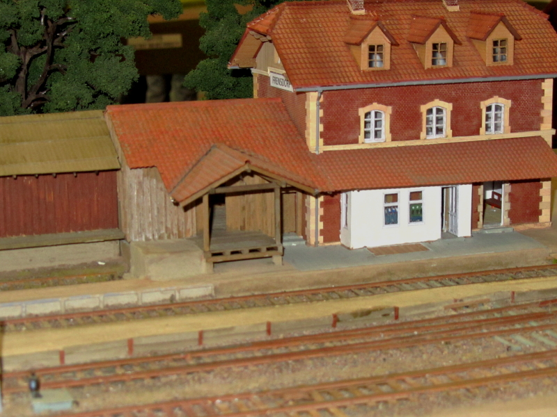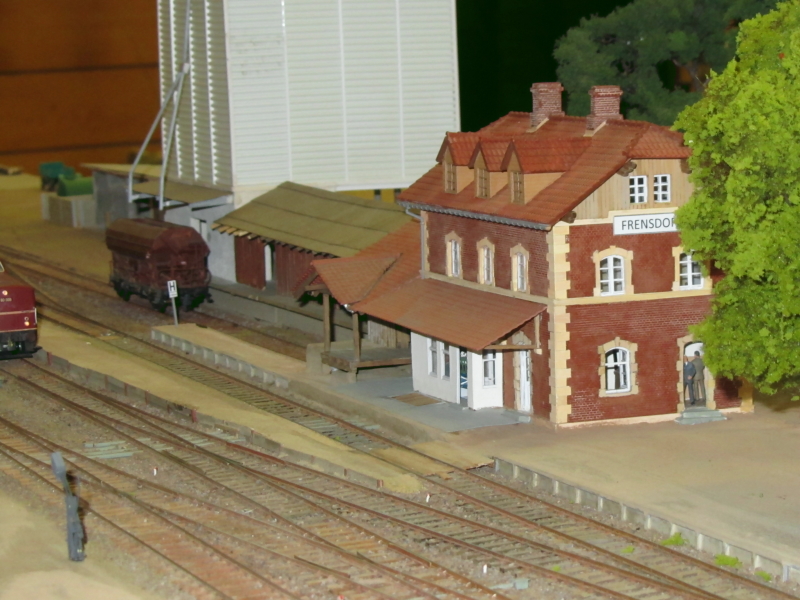 Auf einer LĂ€nge von 7 Metern gab es ein H0-Modularrangement mit dem Nachbau des Frensdorfer Bahnhofes. Es handelt sich hier um Fremo-Module. Das lĂ€ngere und nette GesprĂ€ch mit dem Erbauer (inzwischen -August 2011- habe ich ihn in Regensburg wiedergetroffen. Es ist Andreas LĂŒneburg.) gab mir viele Informationen zum gezeigten Vorbild und auch zu FREMO.