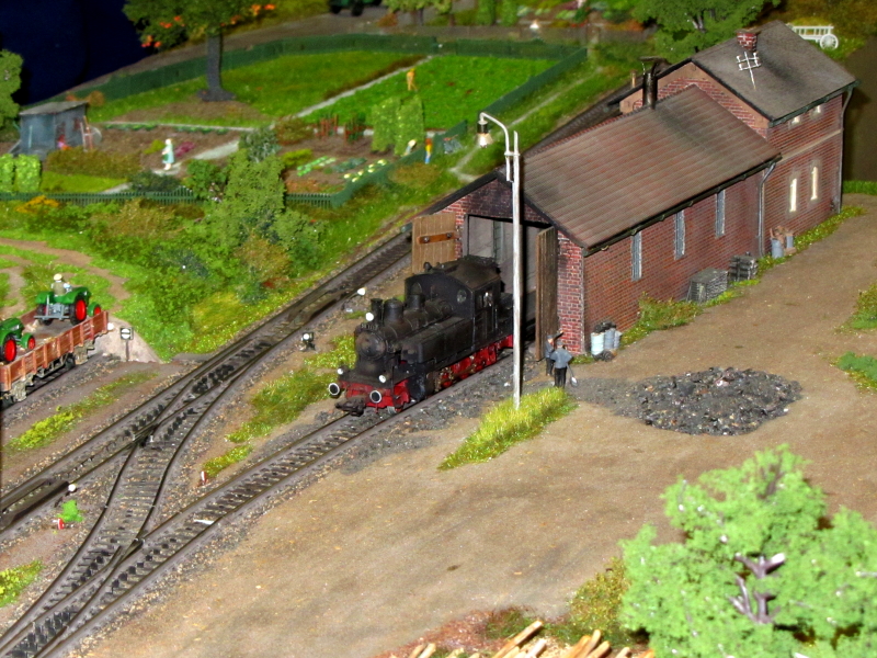 Sehr interessant in Gestaltung und LinienfĂŒhrung war die US H0e Anlage „The Sweetwater and Fillitown Railroad„. Die Bilder sprechen fĂŒr sich.