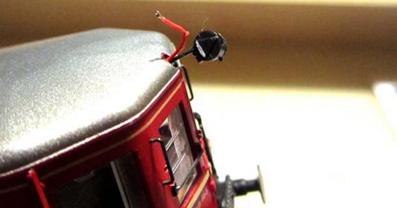 Als ich endlich Anfang September dazu kam, den Wagen auszupacken und zu testen, musste ich mit Schreck feststellen, dass das obere Spitzenlicht abgebrochen und ein Anschlussdraht abgerissen war.