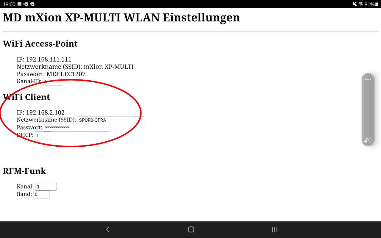 Die nachfolgenden Bilder zeigen Screenshots der Konfigurations-Webseite des mXion MULTI, der Konfigurationsseite der Z21-App auf dem Tablet und der Ăbersichtsseite des Routers.