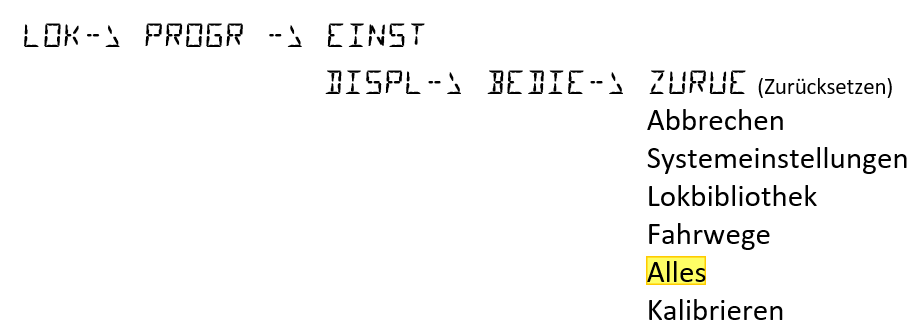 Bevor die WLANmaus fĂŒr das neue System konfiguriert wird, muss diese erst auf die Werkseinstellung zurĂŒckgesetzt werden. Gibt es bereits eine umfangreiche Lokbibliothek, so kann diese beim Reset ausgenommen werden. Die MenĂŒabfolge beim Reset: