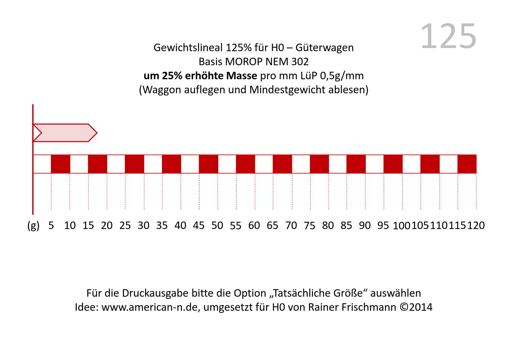 Das Lineal zum Ermitteln der normgerechten Wagengewichte aus meinem Beitrag Gewichtslineal, druckfertig