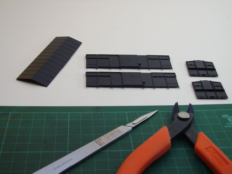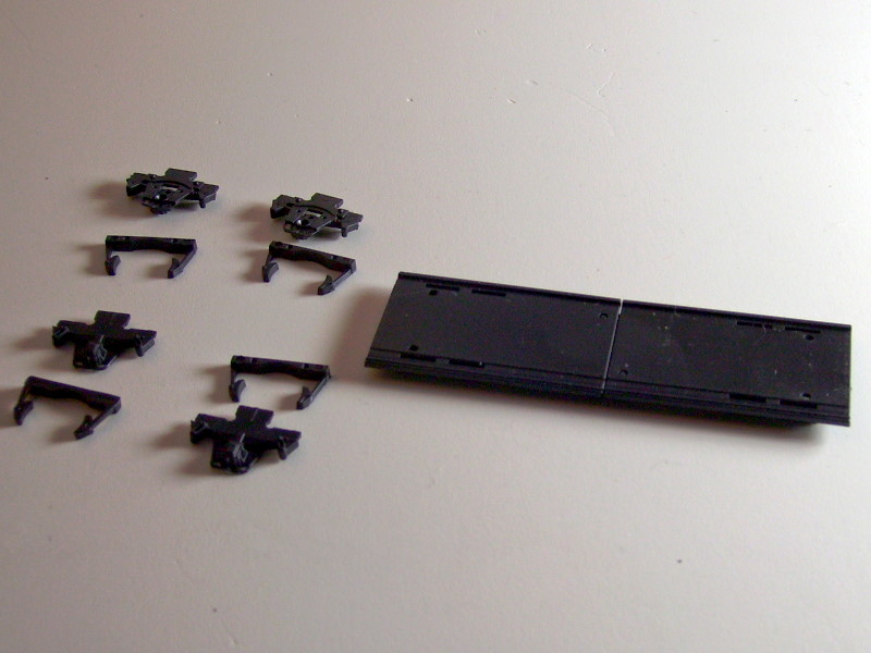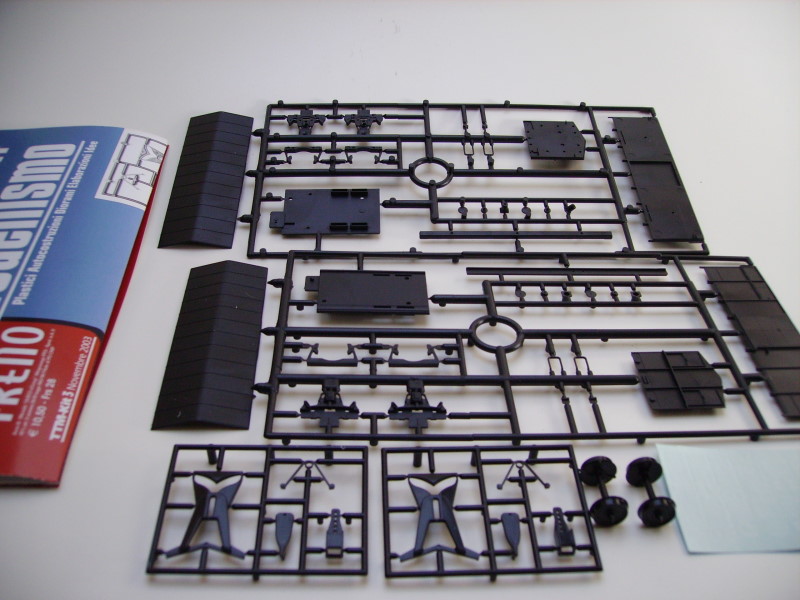 - 2 baugleichen Spritzlingen mit allen notwendigen GehĂ€use- und Fahrwerksteilen. (1 Dach und 2 Aufstiegs-Tritte sind ĂŒbrig und wanderten in die Bastelkiste.)
