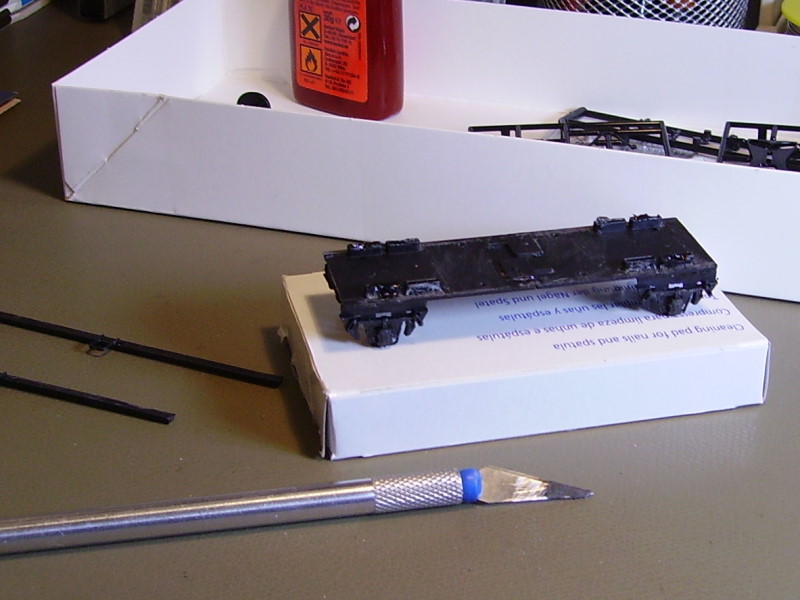 Jetzt muĂ ich mal sehen, ob ich die geklebten Teile zerstörungsfrei wieder auseinanderbringe oder ob dieser Wagen ein Ăbungsobjekt bleibt.