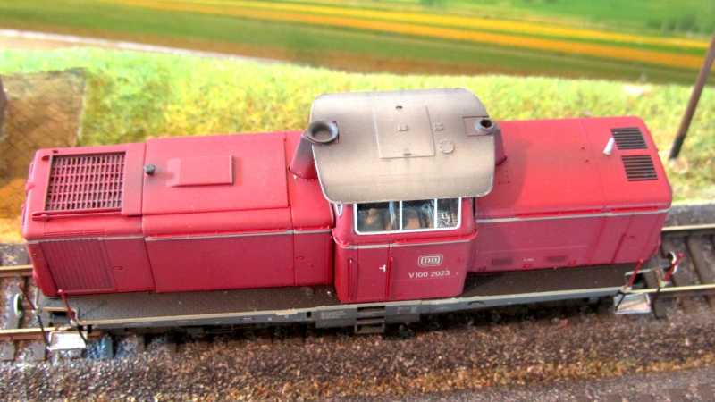 Zwischen Weihnachten und Neujahr brachte mir der Postbote ein großes Paket, Absender AW Speziguzi. Meinen Wünschen entsprechend, dezent gealterte Fahrzeuge zurück zu erhalten, hat der Meister des Luftpinsels keine Mühen gescheut, den Hauch der dezenten Alterung auf die Loks zu bringen. Heute stellen sich mit der V100 2023, V 60 423 und V160 061 drei Loks auf meinem Fotomodul der Kamera und den Lesern meines Blogs. Eine Bemerkung noch dazu: Die Loks sind größtenteils nicht zugerüstet. Das wird zu einem späteren Zeitpunkt erfolgen. Genug der Worte, jetzt lasse ich die Bilder für sich sprechen: