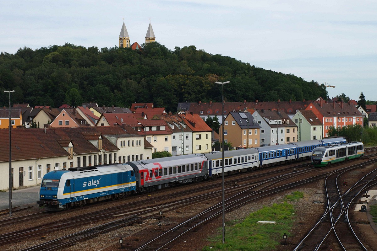 Des weiteren hat mir Mathias König gestern ein Bild zur Veröffentlichung zugesandt. Es zeigt die ZufĂŒhrung des Schlafwagens im ALX aus Prag bei der Einfahrt in Schwandorf. Also am spĂ€ten Donnerstag Nachmittag.