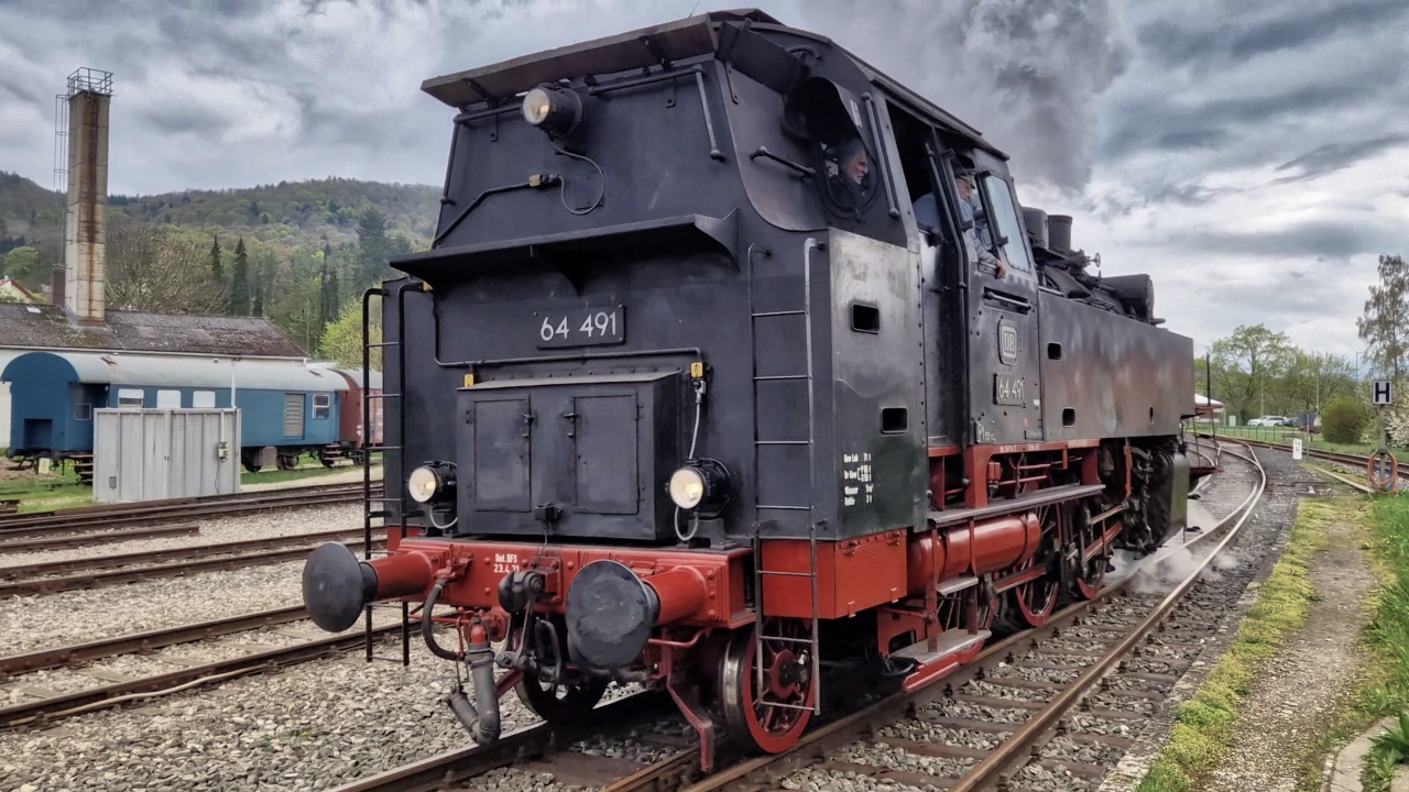 GlĂŒck muss der Mensch haben. In Ebermannstadt angekommen erhielt ich aus berufenem Munde den Hinweis, dass die 64 491 auf Inspektionsfahrt auf der DFS-Strecke unterwegs sei. So fuhr ich nach Muggendorf um dort auf die 64er zu warten…