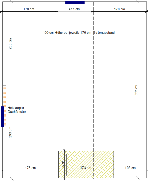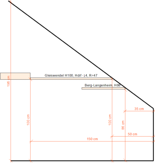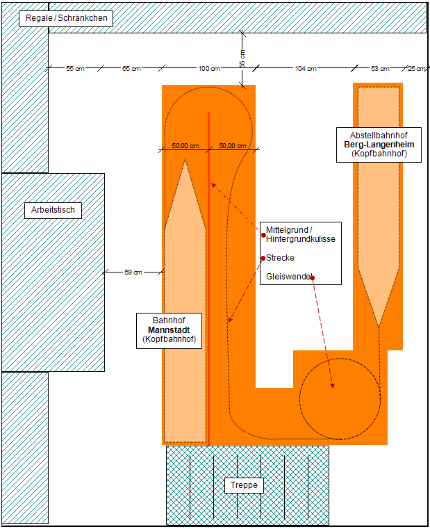 Mein Hobbyraum (Dachboden) soll sowohl die Anlage, als auch meine Modellbahnwerkstatt aufnehmen. Dazu habe ich zuerst einen Raumplan erstellt. Danach skizzierte ich ĂŒber eine lĂ€ngere Zeitstrecke Anlagen-Grundrisse bis ich bei der hier gezeigten Form anglangte.