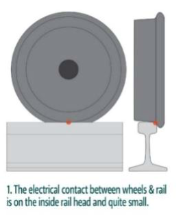Unterm Strich handelt es sich bei dieser schwarzen Schmiere größtenteils um Metalloxide, die durch Mikro-Lichtbogenbildung zwischen den Rädern und der Schiene entstanden sind. Dieser Kontaktpunkt ist recht klein, wie Sie in Im Wesentlichen löst der Strom, der an diesem winzigen Kontaktpunkt fließt, eine chemische Reaktion in den Rädern und Schienen aus.