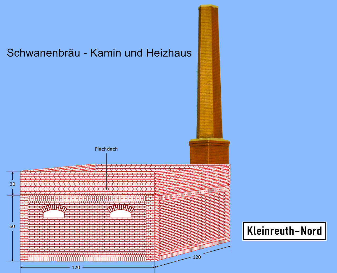 So in etwa stelle ich mir die Platzierung von Heizhaus und Kamin zueinander vor: