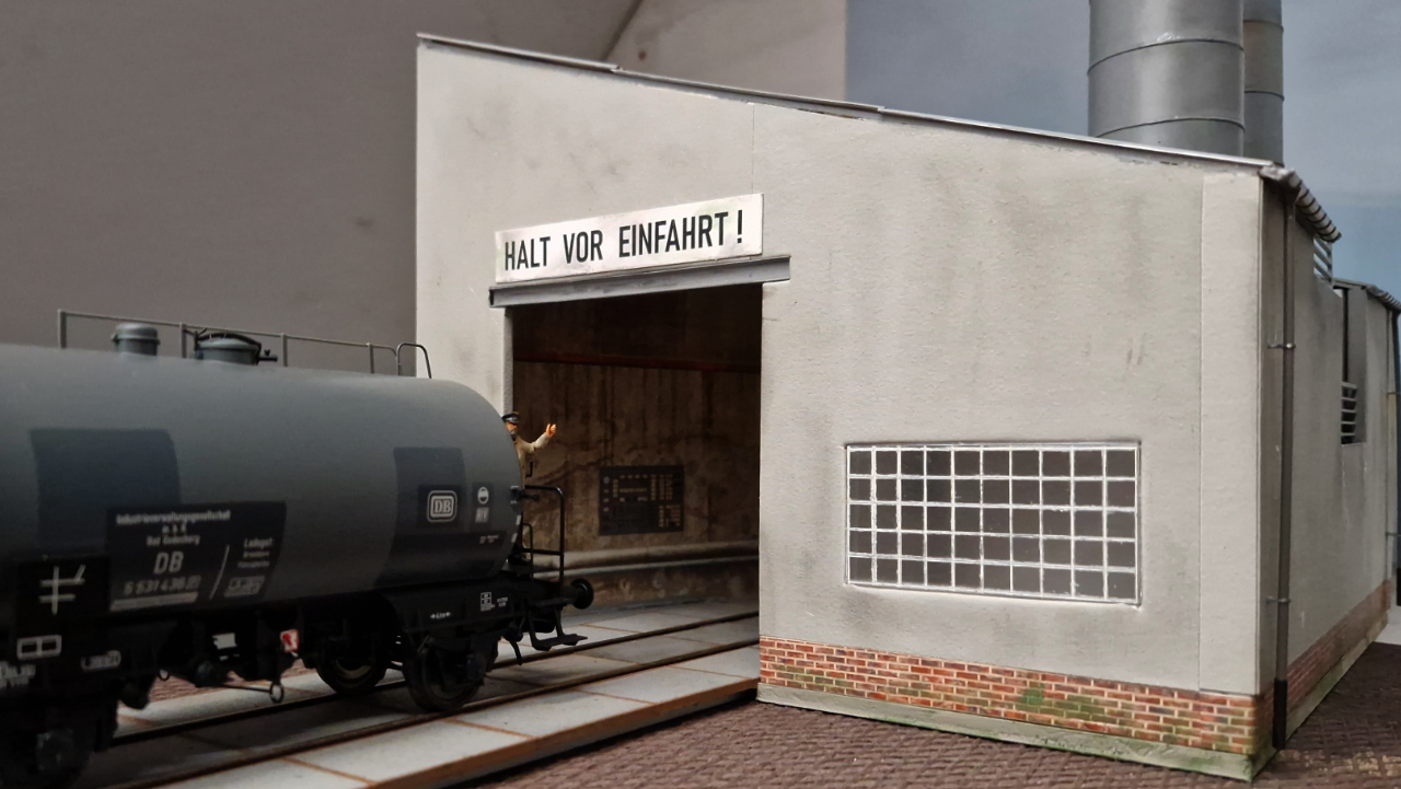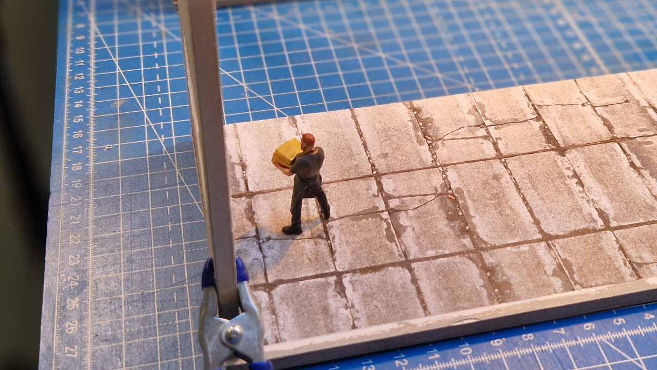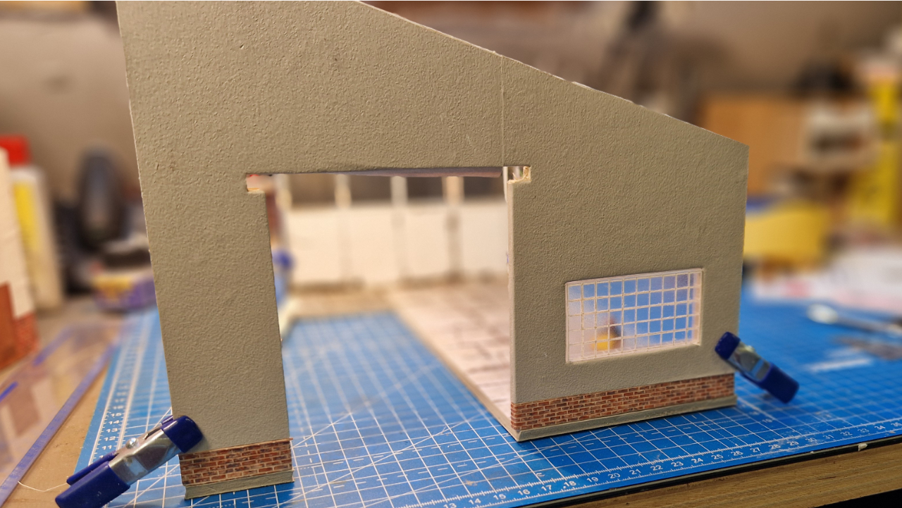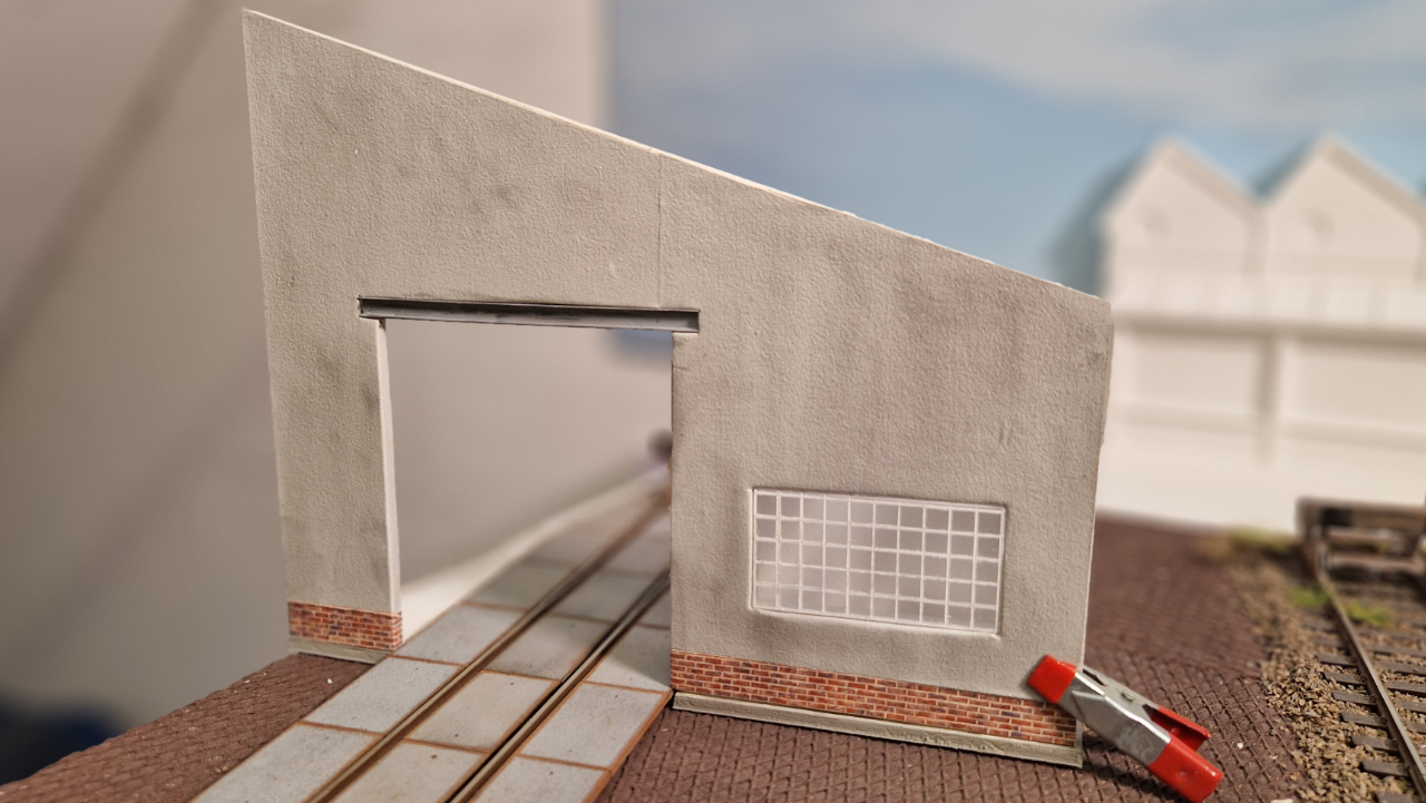Die Glasbausteinwand in der benötigten GröĂe zurechtschneiden und in das GebĂ€ude einbauen war der nĂ€chste Schritt.