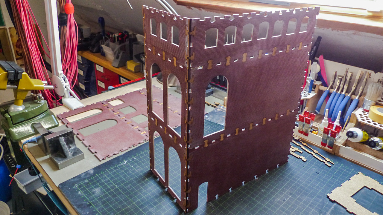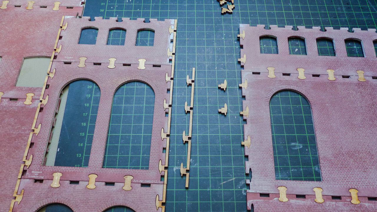 Bei den weiteren noch zu bauenden GebÀuden klebe ich die verglasten Fenster bereits in die einzelnen Elemente ein. Die Handhabung ist dadurch besser. Danach erst die WÀnde zusammensetzen.