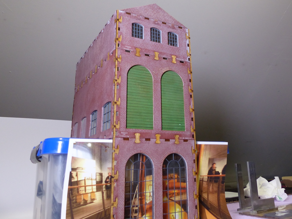 Als nÀchstes brachte ich die selbstklebenden Mauer-Verblendungen an. Das Sudhaus zeigt sich nun so: