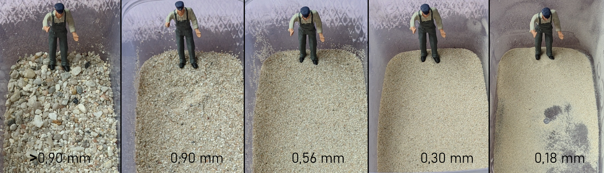 - ausgesiebt mit Sieb 0,18mm, 0,30mm, 0,56mm, 0,90mm