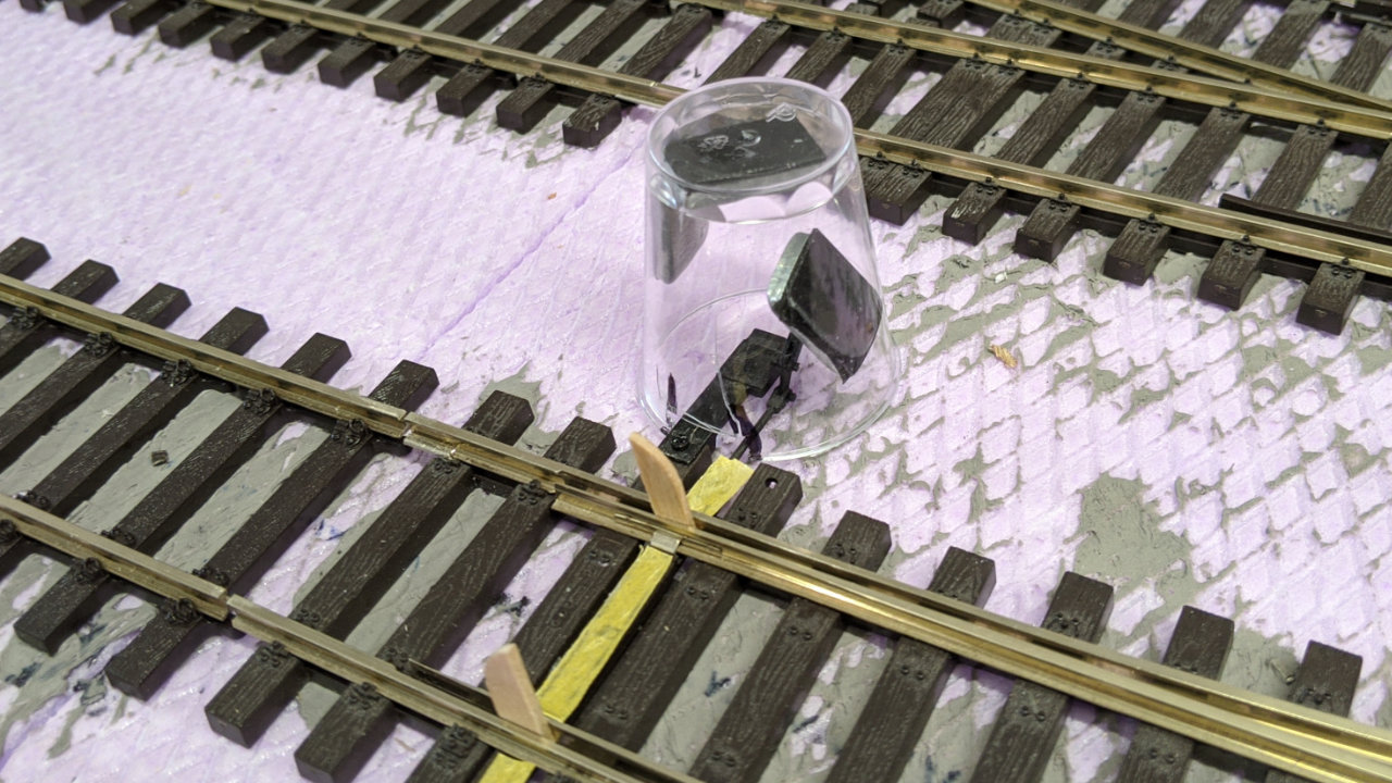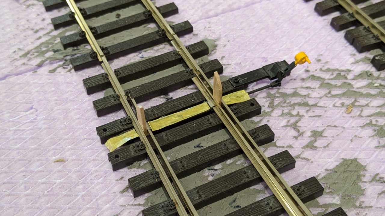 Endlich habe ich mich an das Sprühlackieren von Weichen gewagt. Meine Plan war herauszufinden, wie ich den Stellbock/Stellhebel sowie die Stellschwelle am Besten vor Farbe und festkleben schützen kann.