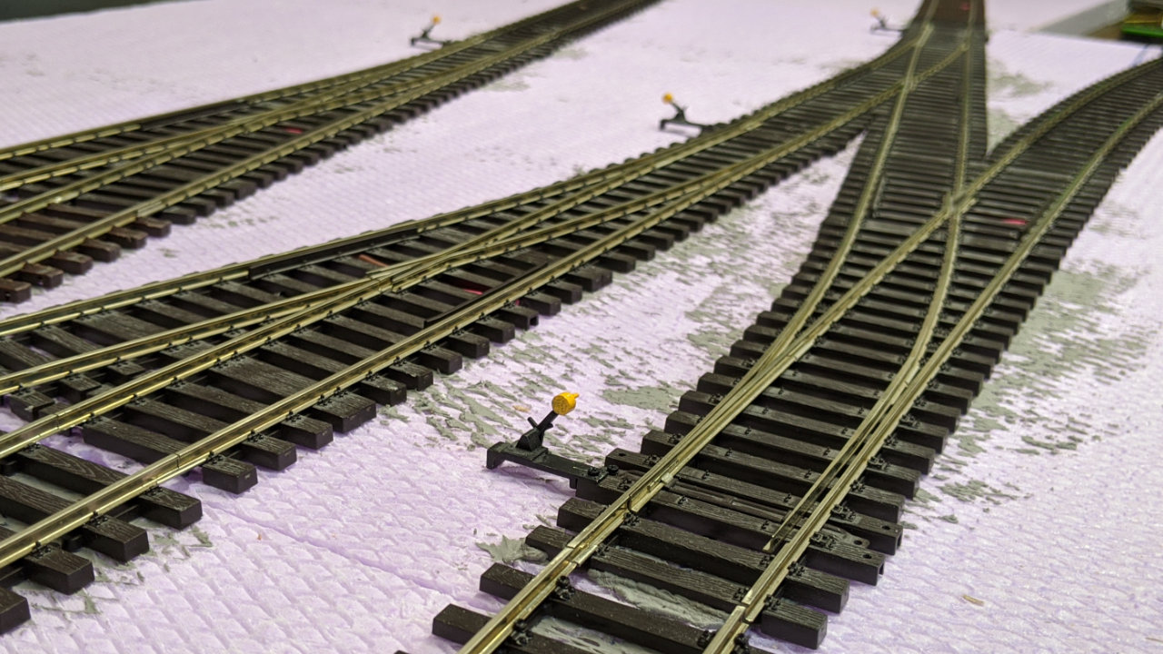 Die Überschrift sagt es bereits. In Kleinreuth-Nord sind die Weichen ortsgestellt. Ich entschied mich dafĂŒr, die Weichen ohne definierte Grundstellung zu verwenden. Das Hebelgewicht von ortsgestellten Weichen, fĂŒr die keine Grundstellung bestimmt ist, hat einen gelben Farbanstrich. Farbe und Pinselchen waren vorhin in Aktion: