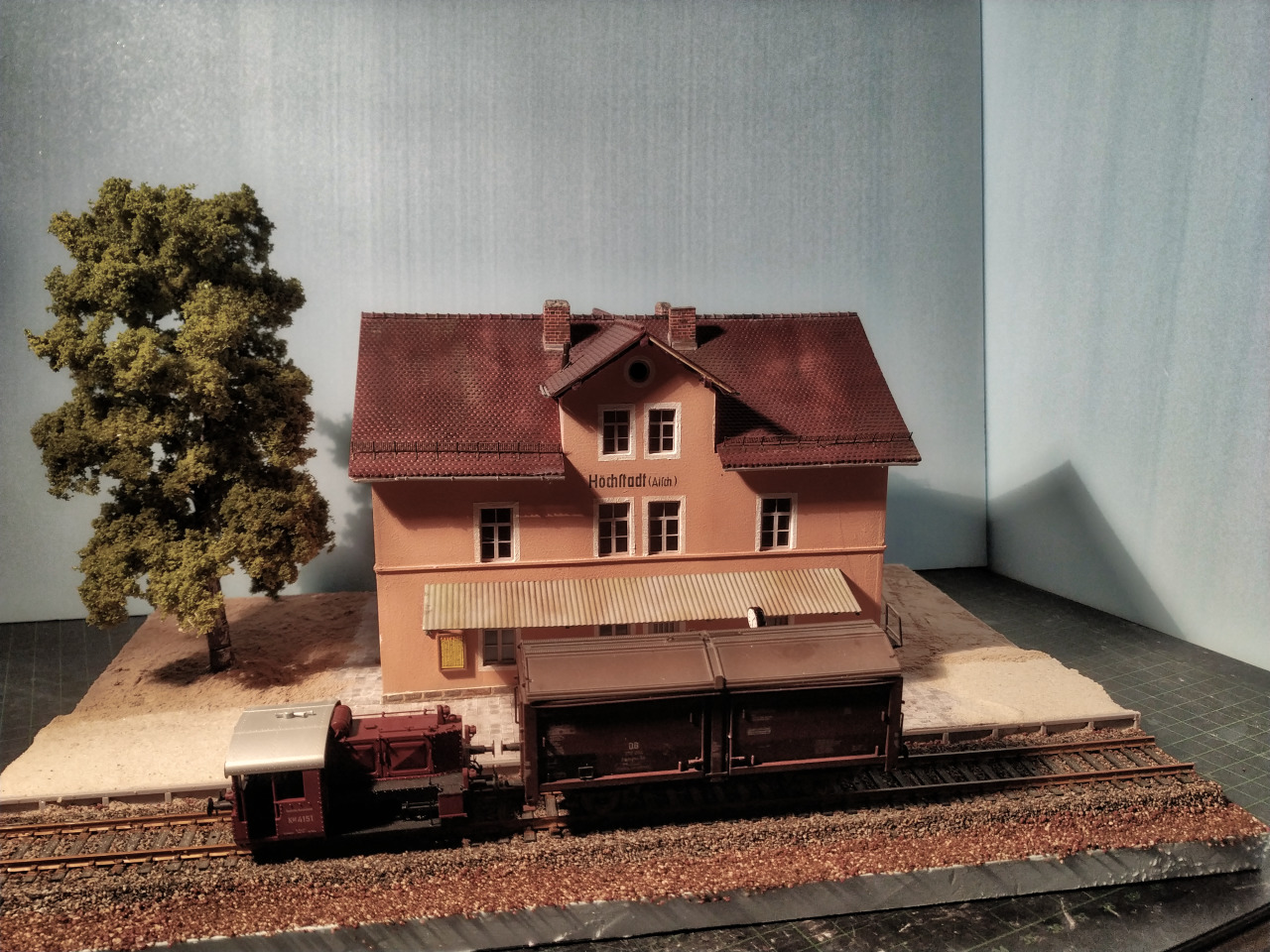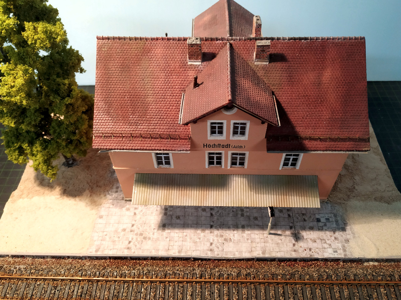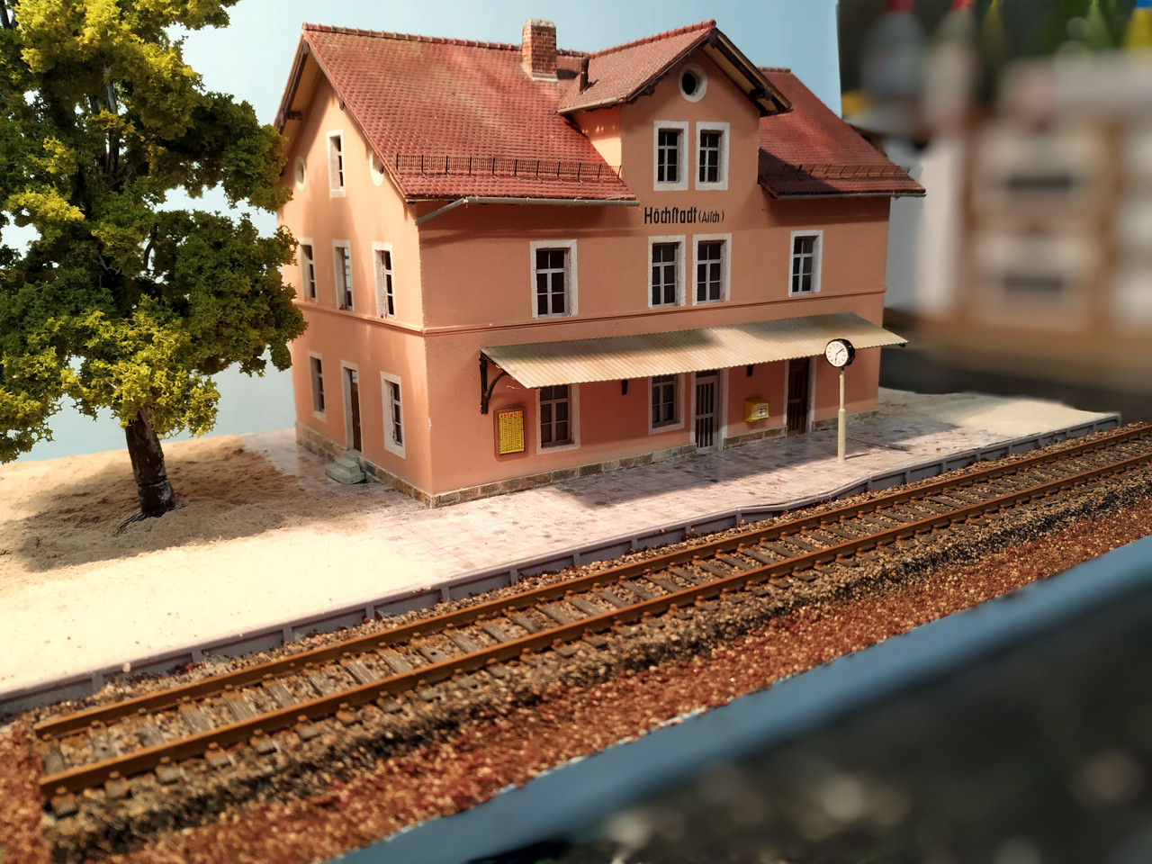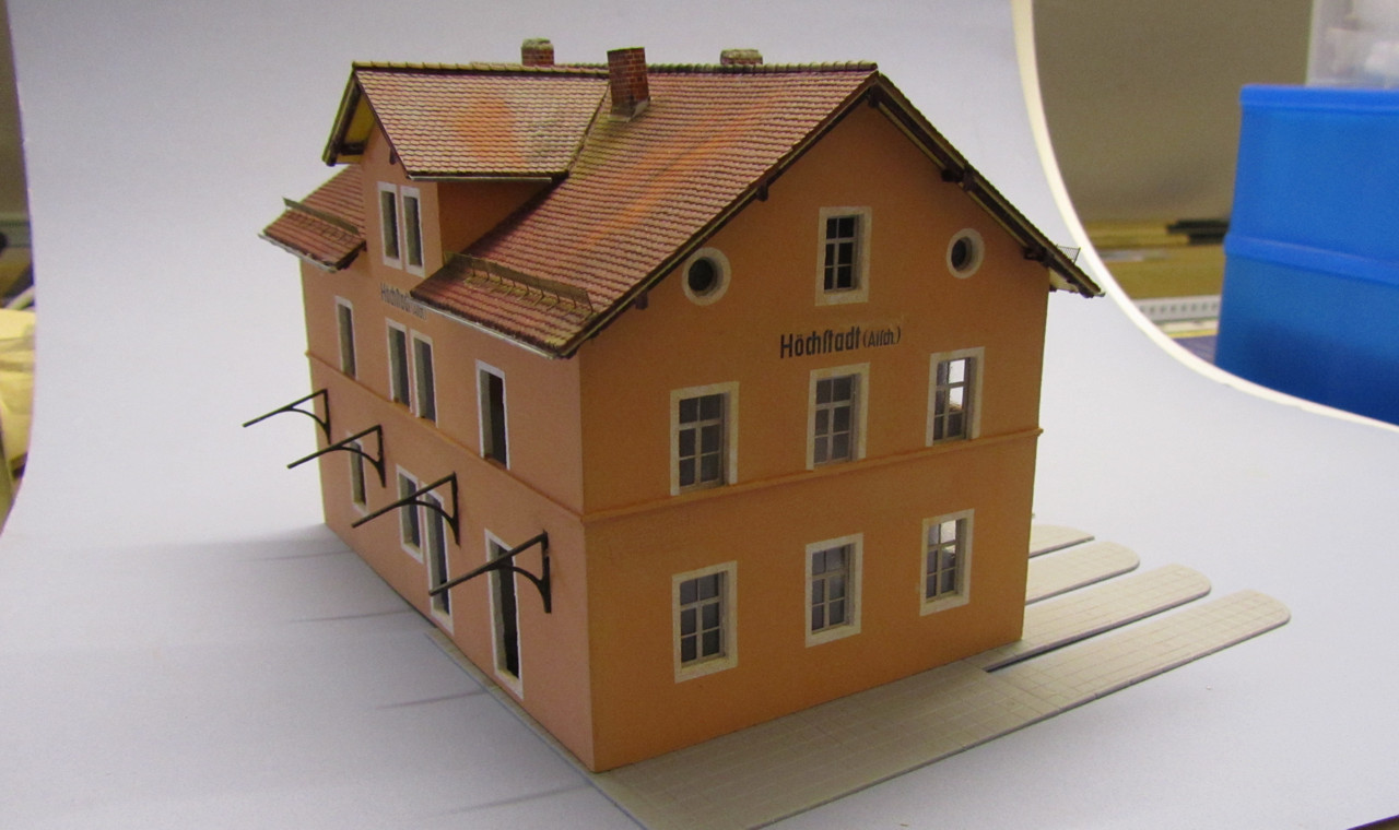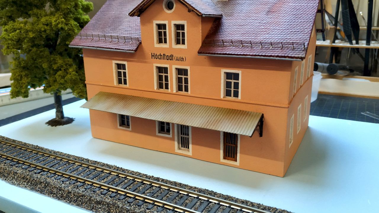 So beschloss ich, das Stationsgebäude Höchstadt/Aisch zusammen mit etwas Ausstattungsmaterial als „Diorama unter Acrylhaube“ fertigzustellen.
