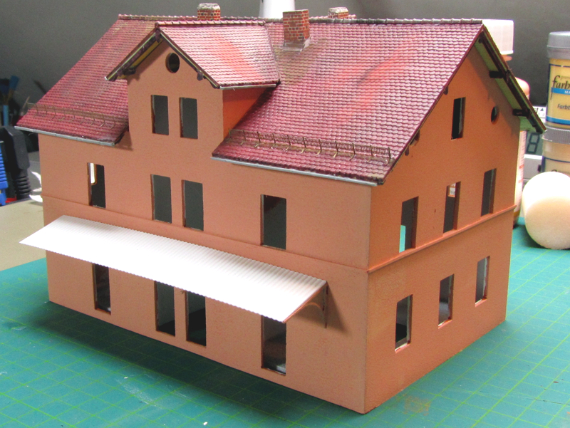 Und hier mit provisorisch aufgelegtem unbearbeiteten Wellblech-Vordach