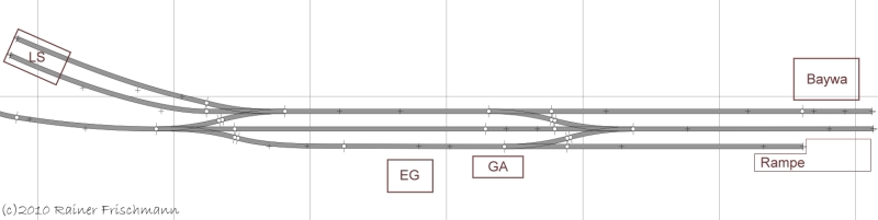 Den Gleisplan des Bahnhofes Höchstadt habe ich mit Rocoline Gleisen und AnyRail4 geplant.